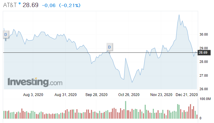 T는 우리가 흔히 아는 미국의 메이저 통신사로, 이전에 관련 포스팅을 작성한 이력이 있다. 현재 주가 28.69%이며 배당률은 7.23%로 상당히 높은 편이다. 배당을 36년가량 증가시켜왔기 때문에, 배당에 대한 신뢰도 역시 상당히 큰 편이다. HBO Max를 가졌을 뿐만 아니라, ESPN 역시 소유하고 있기 때문에, COVID-19의 종식과 함께 주가 상승을 기대할만하다.